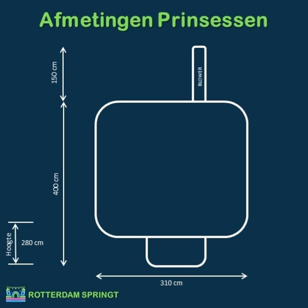 Maak van elk feestje iets bijzonders met het Prinsessen Springkussen. Het betoverende ontwerp en het overdekte dak maken het ideaal voor ouders die comfort én veiligheid belangrijk vinden. Kinderen kunnen bij elk weer ongestoord spelen en zich even echte prinsessen of ridders voelen. Een charmante blikvanger die zorgt voor sprookjesachtige herinneringen.