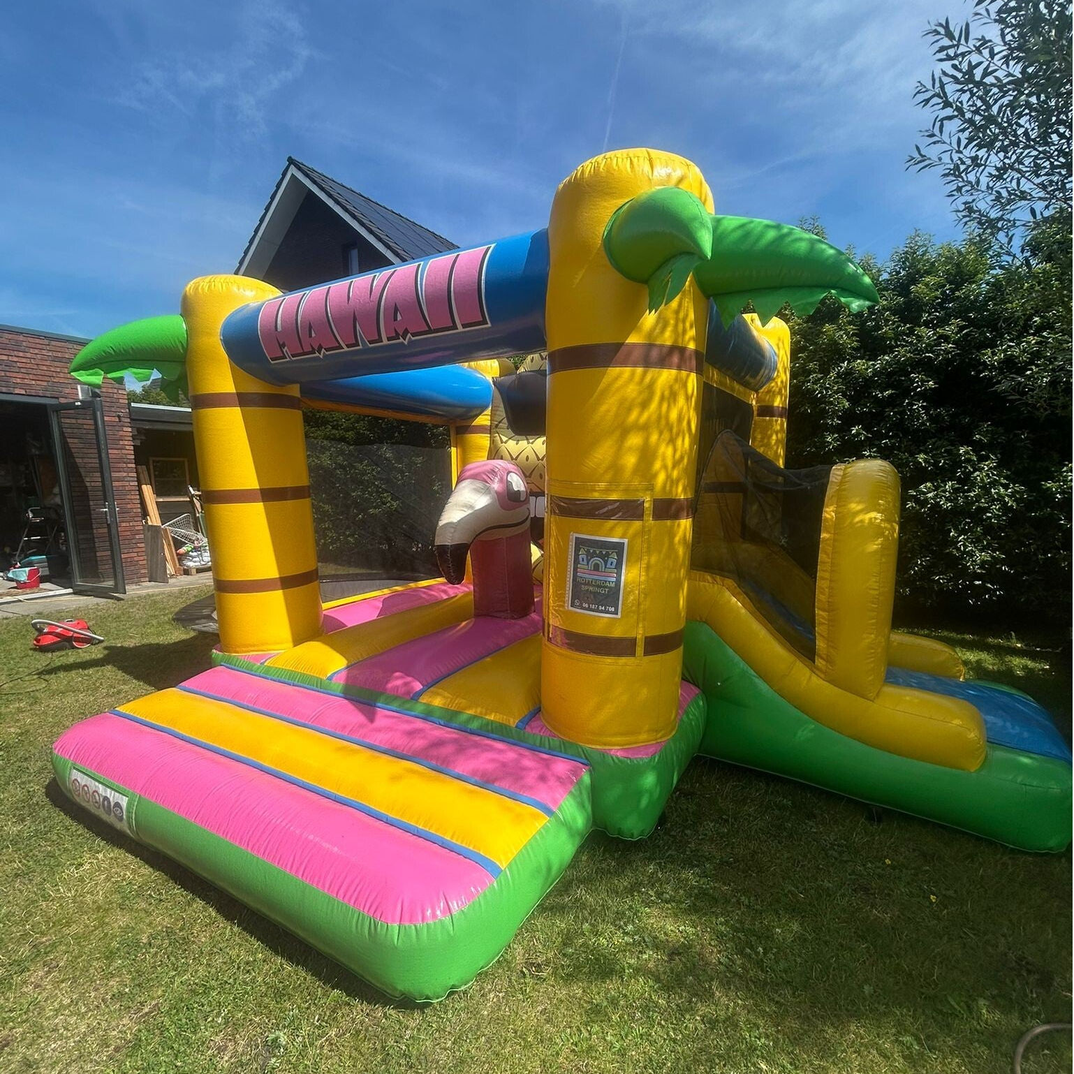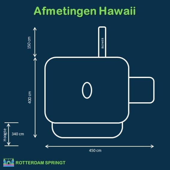 Breng zomerse gezelligheid naar elk feestje met het Hawaii Springkussen! De vrolijke kleuren en tropische prints zorgen direct voor een feestelijke sfeer, terwijl kinderen zich volop kunnen uitleven. Dankzij het compacte formaat past dit springkussen eenvoudig in de meeste tuinen en is het snel op te zetten. Een veilige en betrouwbare keuze voor ouders die de kinderen een zonnige dag vol springplezier willen bezorgen.