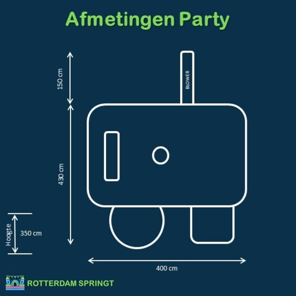 Het Party Springkussen maakt van elk evenement een gegarandeerd succes. Dankzij de ruime opzet kunnen meerdere kinderen tegelijk spelen, springen en glijden. Ouders waarderen de stabiele constructie en het complete ontwerp met obstakels en glijbaan. Perfect voor verjaardagen, buurtfeesten of schoolactiviteiten waar veel kinderen samenkomen. Een echte blikvanger die staat voor urenlang zorgeloos plezier!